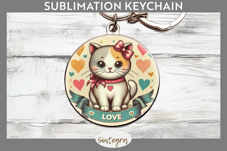 Love Cat v11 Round Keychain Sublimation example image 1
