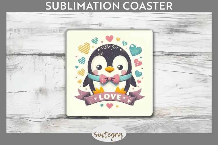 Funny Valentine Sublimation Image Sublimation Print Valentine Sublimation Coaster Template Love Penguin Valentine Sublimation Png Sublimation Coaster Square Coaster Png Sublimation Square Coaster