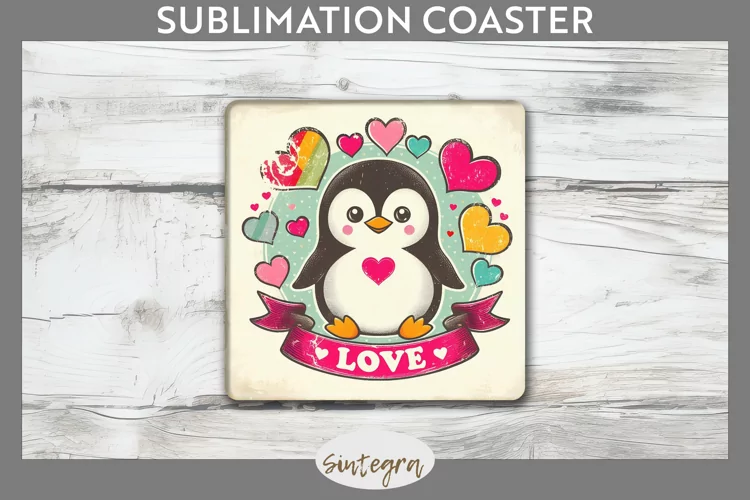 Funny Valentine Sublimation Image Sublimation Print Valentine Sublimation Coaster Template Love Penguin Valentine Sublimation Png Sublimation Coaster Square Coaster Png Sublimation Square Coaster