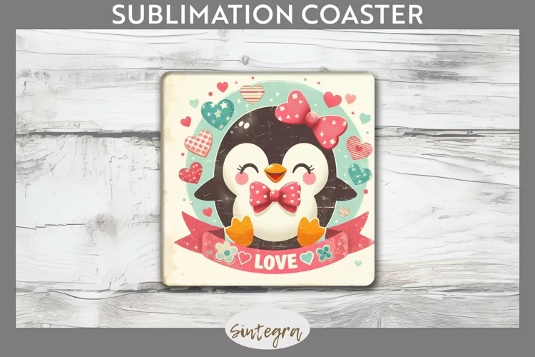 Funny Valentine Sublimation Image Sublimation Print Valentine Sublimation Coaster Template Love Penguin Valentine Sublimation Png Sublimation Coaster Square Coaster Png Sublimation Square Coaster