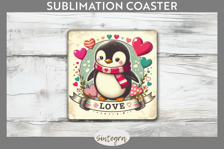 Funny Valentine Sublimation Image Sublimation Print Valentine Sublimation Coaster Template Love Penguin Valentine Sublimation Png Sublimation Coaster Square Coaster Png Sublimation Square Coaster