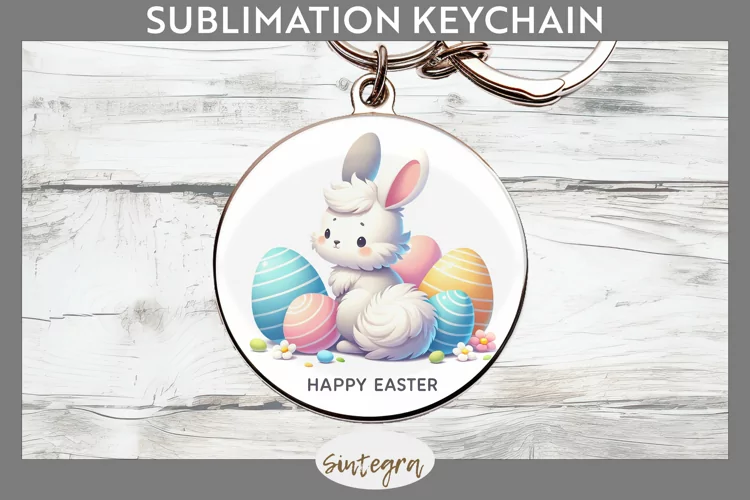 Happy Easter v1 Round Keychain Sublimation example image 1