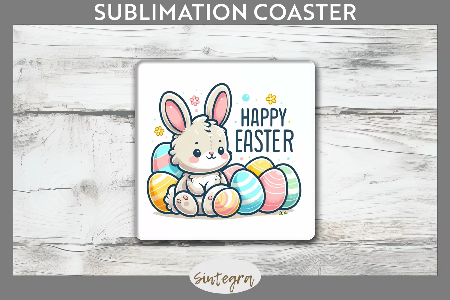 Happy Easter v2 Square Coaster Sublimation example image 1