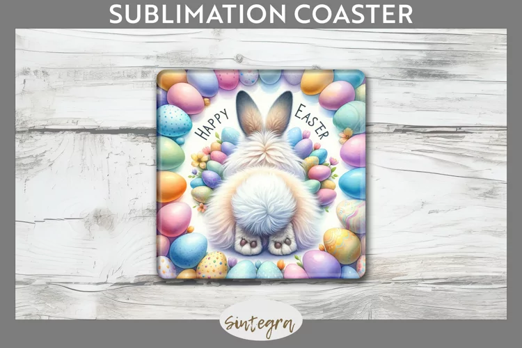 Happy Easter Spring Sublimation Sublimation Image Sublimation Print Coaster Template Sublimation Coaster Square Coaster Png Sublimation Square Coaster Easter Bunny But Funny Bunny But