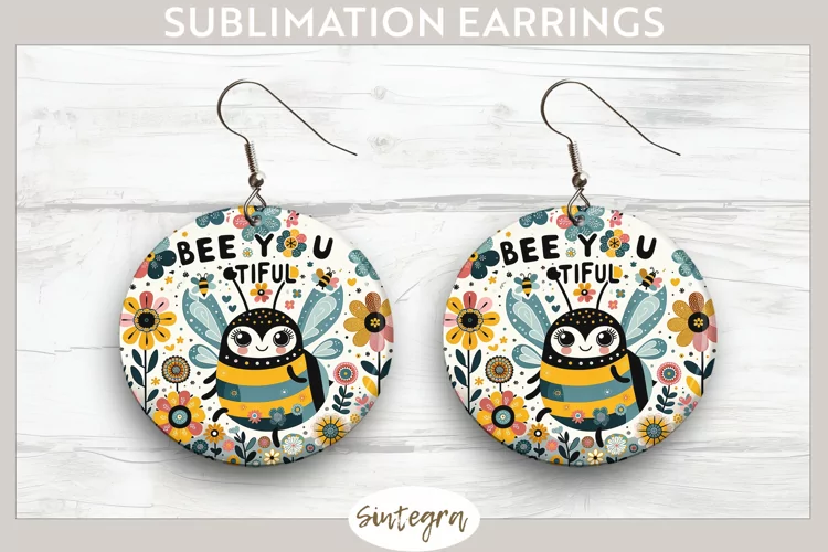 Cute Quote Round Earrings Spring Sublimation Sublimation Image Earrings Template Sublimation Print Sublimation Earrings Bee Quote Bee You Tiful Sublimation Round Earrings