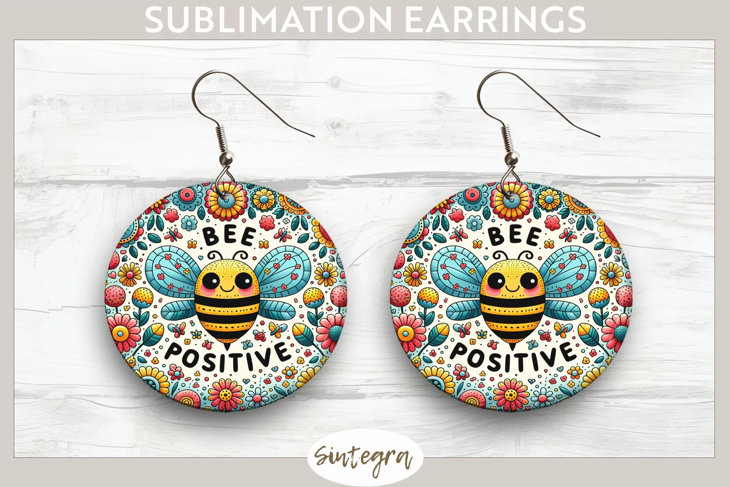 Bee Positive v5 Round Earrings Sublimation example image 1