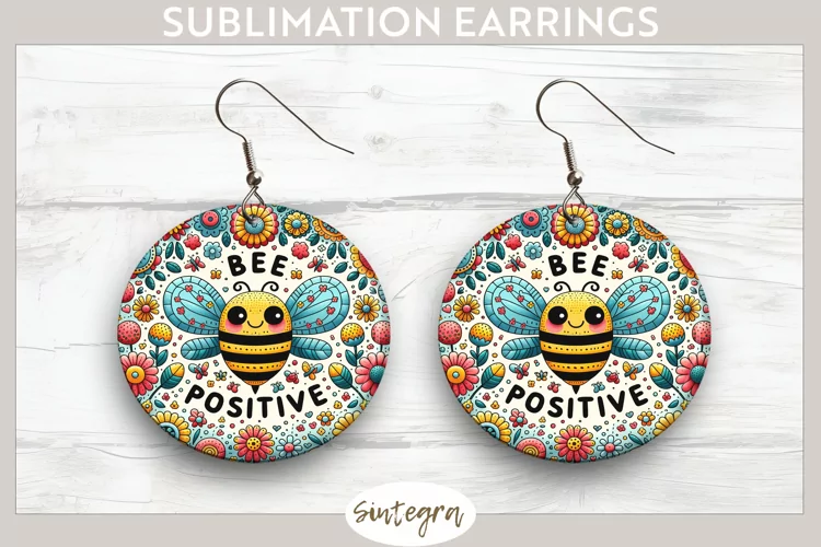 Cute Quote Round Earrings Spring Sublimation Sublimation Image Earrings Template Sublimation Print Sublimation Earrings Bee Positive Bee Quote Sublimation Round Earrings