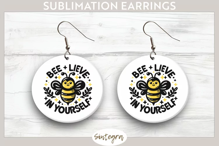 Cute Quote Round Earrings Spring Sublimation Sublimation Image Earrings Template Bee Lieve In Yourself Sublimation Print Sublimation Earrings Bee Quote Sublimation Round Earrings