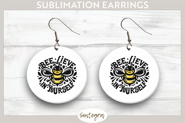 Cute Quote Round Earrings Spring Sublimation Sublimation Image Earrings Template Bee Lieve In Yourself Sublimation Print Sublimation Earrings Bee Quote Sublimation Round Earrings