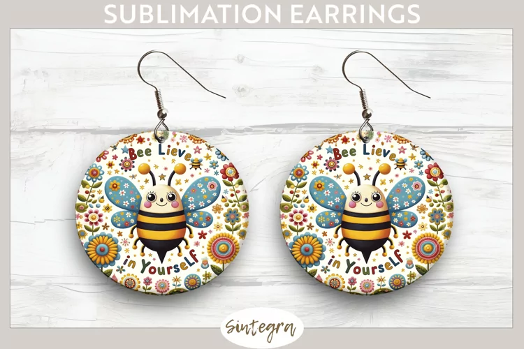 Cute Quote Round Earrings Spring Sublimation Sublimation Image Earrings Template Bee Lieve In Yourself Sublimation Print Sublimation Earrings Bee Quote Sublimation Round Earrings