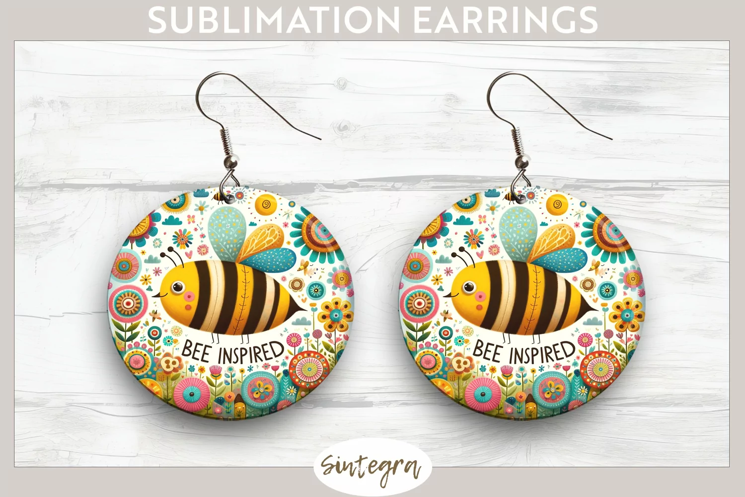 Bee Inspired v1 Round Earrings Sublimation example image 1