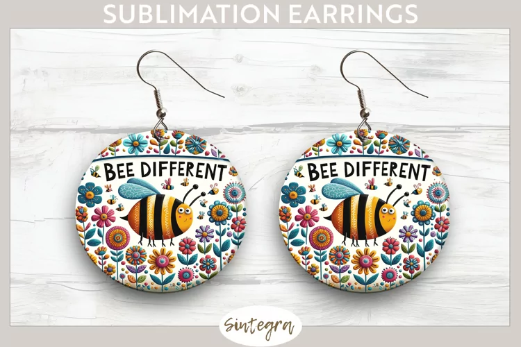Cute Quote Round Earrings Spring Sublimation Sublimation Image Earrings Template Sublimation Print Sublimation Earrings Bee Quote Bee Different Sublimation Round Earrings