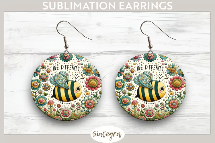 Cute Quote Round Earrings Spring Sublimation Sublimation Image Earrings Template Sublimation Print Sublimation Earrings Bee Quote Bee Different Sublimation Round Earrings