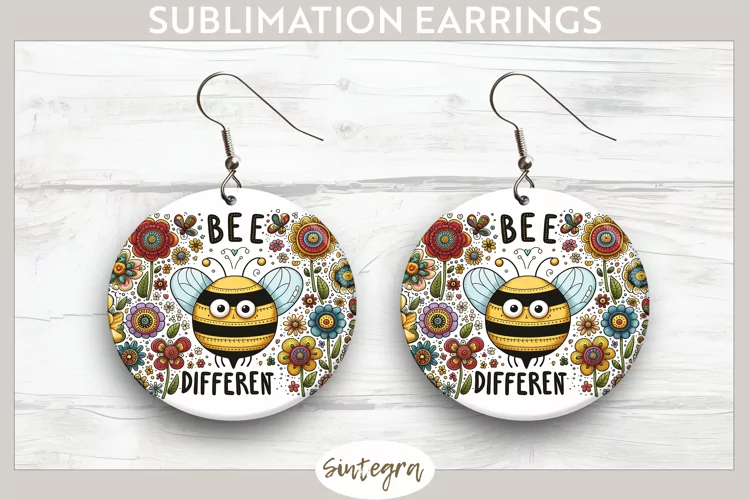 Cute Quote Round Earrings Spring Sublimation Sublimation Image Earrings Template Sublimation Print Sublimation Earrings Bee Quote Bee Different Sublimation Round Earrings