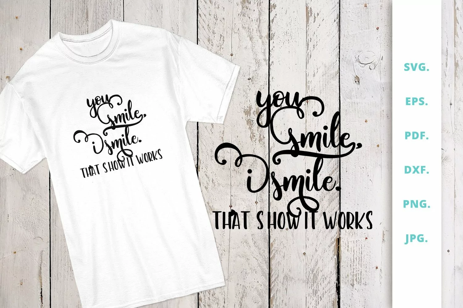 You smile, I smile That’s how it works Quote is perfect for crafts, for cutting machine, for t-shirt, for printing, for diy or any project design you have in mind. Professional design created especially for you. It's easy editable.