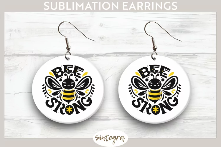 Cute Quote Round Earrings Spring Sublimation Sublimation Image Earrings Template Sublimation Print Sublimation Earrings Bee Quote Bee Strong Sublimation Round Earrings