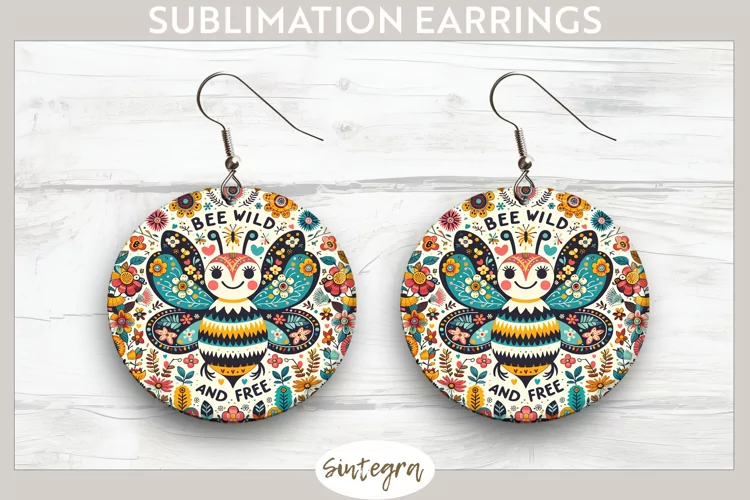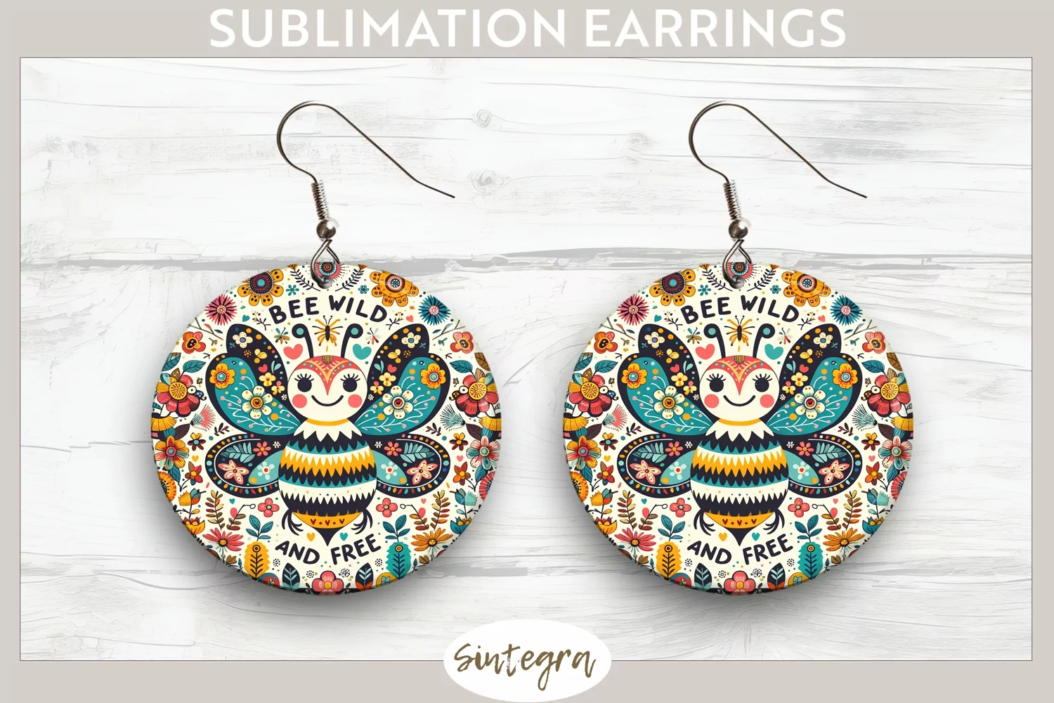 Bee Wild & Free v7 Round Earrings Sublimation example image 1