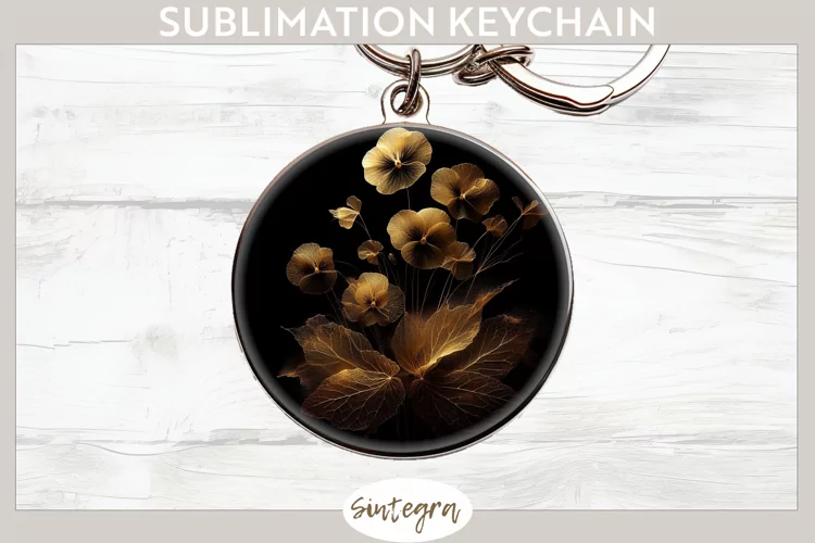 Gold Flower Sublimation Image Floral Sublimation Sublimation Print Keychain Template Sublimation Keychain Round Keychain Png Sublimation Round Keychain Glowing Pansies Glowing Pansies Keychain