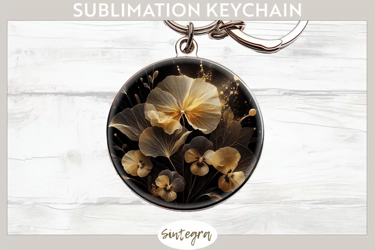 Gold Flower Sublimation Image Floral Sublimation Sublimation Print Keychain Template Sublimation Keychain Round Keychain Png Sublimation Round Keychain Glowing Pansies Glowing Pansies Keychain
