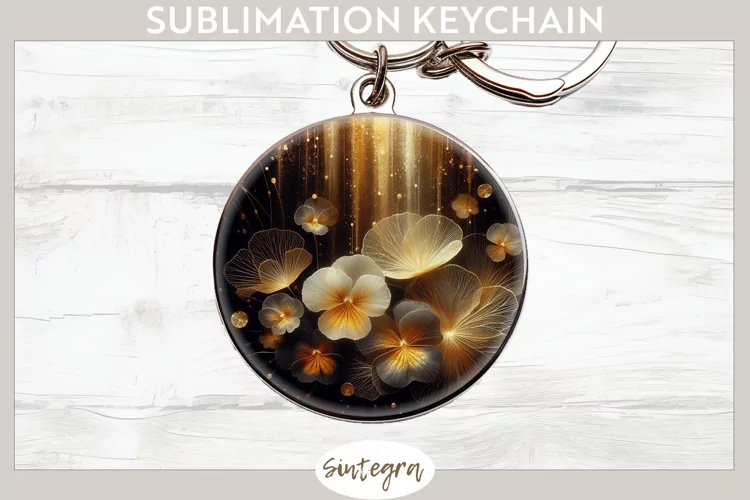 Gold Flower Sublimation Image Floral Sublimation Sublimation Print Keychain Template Sublimation Keychain Round Keychain Png Sublimation Round Keychain Glowing Pansies Glowing Pansies Keychain