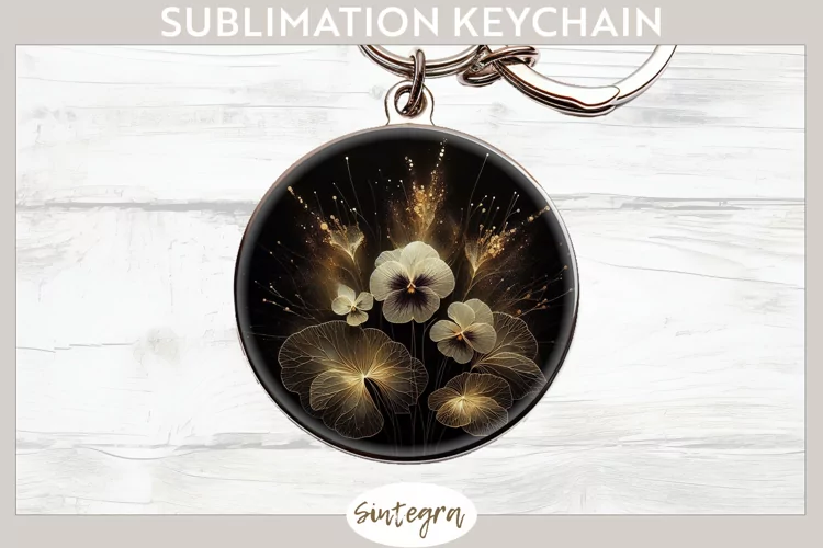 Gold Flower Sublimation Image Floral Sublimation Sublimation Print Keychain Template Sublimation Keychain Round Keychain Png Sublimation Round Keychain Glowing Pansies Glowing Pansies Keychain