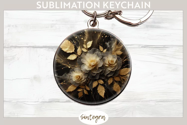 Gold Flower Sublimation Image Floral Sublimation Sublimation Print Keychain Template Sublimation Keychain Round Keychain Png Sublimation Round Keychain Glowing Roses Glowing Roses Keychain