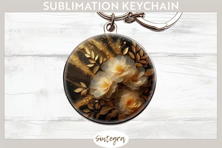 Gold Flower Sublimation Image Floral Sublimation Sublimation Print Keychain Template Sublimation Keychain Round Keychain Png Sublimation Round Keychain Glowing Roses Glowing Roses Keychain