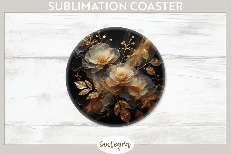 Gold Flower Sublimation Image Floral Sublimation Sublimation Print Coaster Template Sublimation Coaster Sublimation Round Coaster Round Coaster Png Glowing Roses Glowing Roses Coaster
