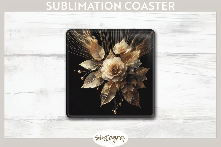 Gold Flower Sublimation Image Floral Sublimation Sublimation Print Coaster Template Sublimation Coaster Square Coaster Png Sublimation Square Coaster Glowing Roses Glowing Roses Coaster