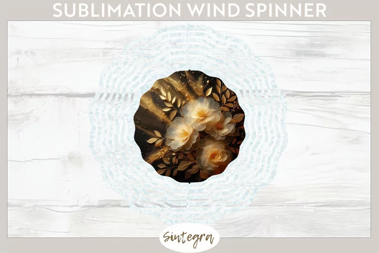 Gold Flower Sublimation Image Floral Sublimation Sublimation Print Wind Spinner Png Wind Spinner Template Sublimation Wind Spinner Glowing Roses Glowing Roses Wind Spinner
