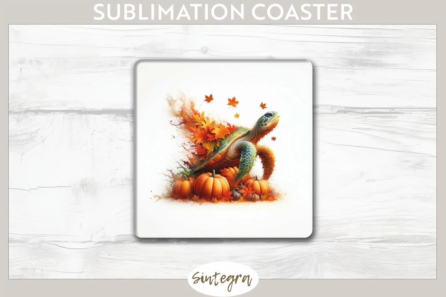Fall Turtle Animal v2 Square Coaster Sublimation example image 1