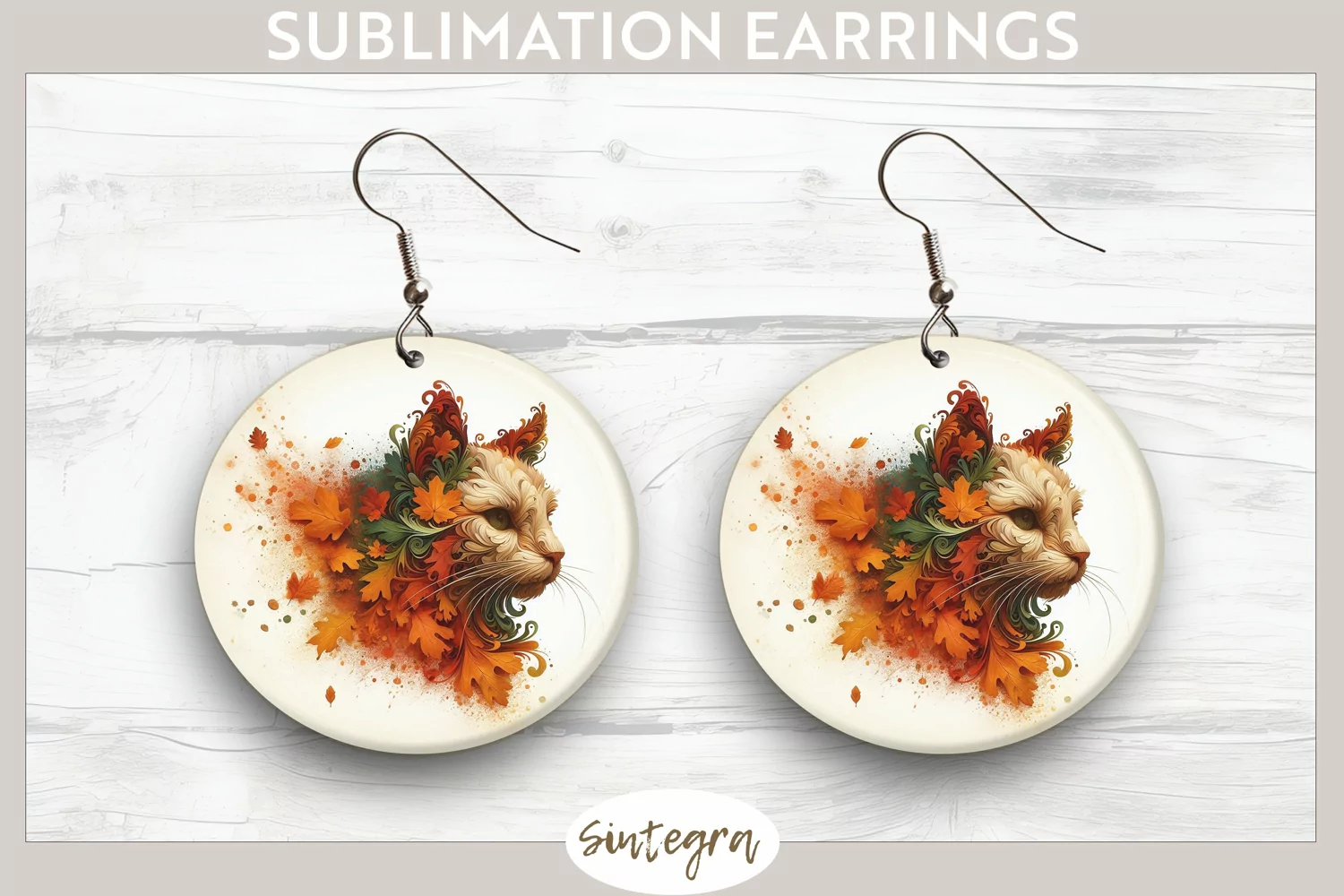 Fall Cat Animal v2 Round Earrings Sublimation example image 1