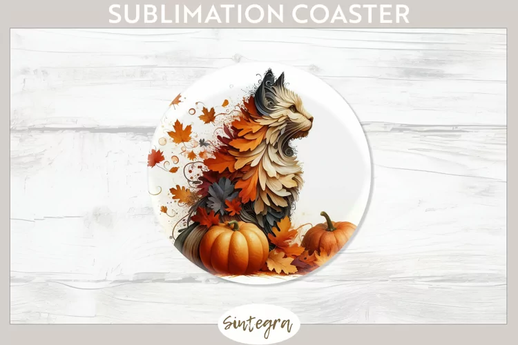 Sublimation Image Sublimation Print Coaster Template Floral Pumpkin Sublimation Sublimation Coaster Sublimation Round Coaster Floral Pumpkin Sublimation Png Autumn Floral Pumpkin Round Coaster Png Fall Cat Animal With Pumpkin