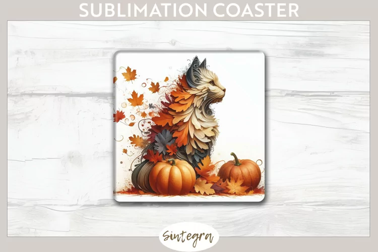 Sublimation Image Sublimation Print Coaster Template Floral Pumpkin Sublimation Sublimation Coaster Floral Pumpkin Sublimation Png Autumn Floral Pumpkin Square Coaster Png Sublimation Square Coaster Fall Cat Animal With Pumpkin