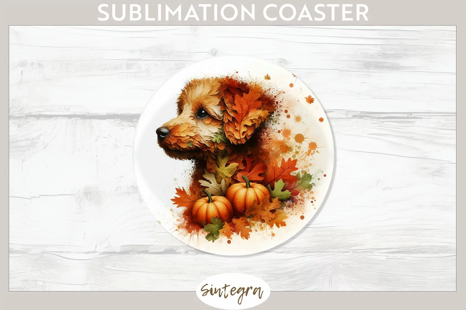 Fall Dog Animal v6 Round Coaster Sublimation example image 1