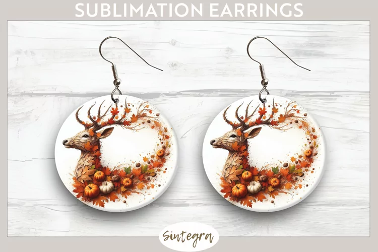 Round Earrings Sublimation Image Earrings Template Sublimation Print Sublimation Earrings Floral Pumpkin Sublimation Sublimation Round Earrings Floral Pumpkin Sublimation Png Autumn Floral Pumpkin Fall Deer Animal With Pumpkin