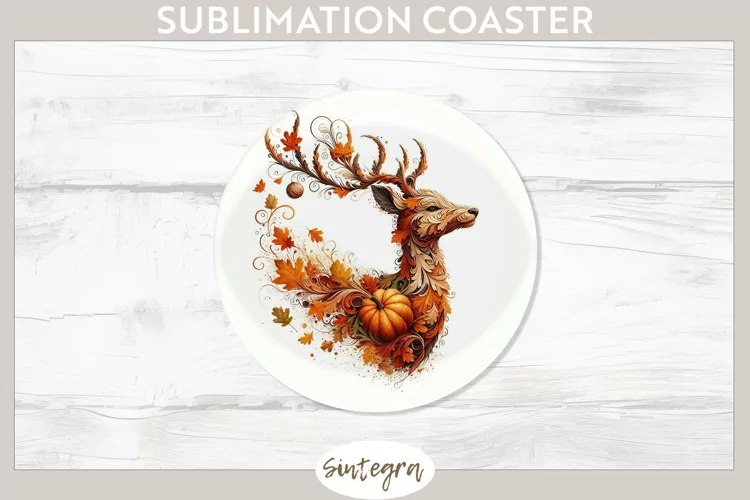 Sublimation Image Sublimation Print Coaster Template Floral Pumpkin Sublimation Sublimation Coaster Sublimation Round Coaster Floral Pumpkin Sublimation Png Autumn Floral Pumpkin Round Coaster Png Fall Deer Animal With Pumpkin