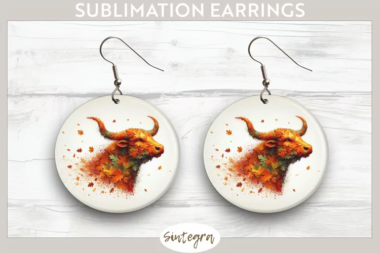 Similar Design Products to Fall Bull Animal v3 Round Earrings Sublimation