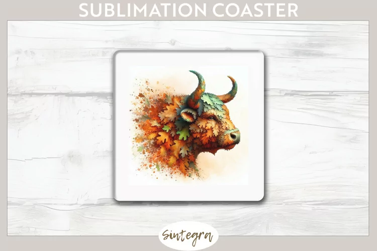 Fall Bull Animal v2 Square Coaster Sublimation example image 1
