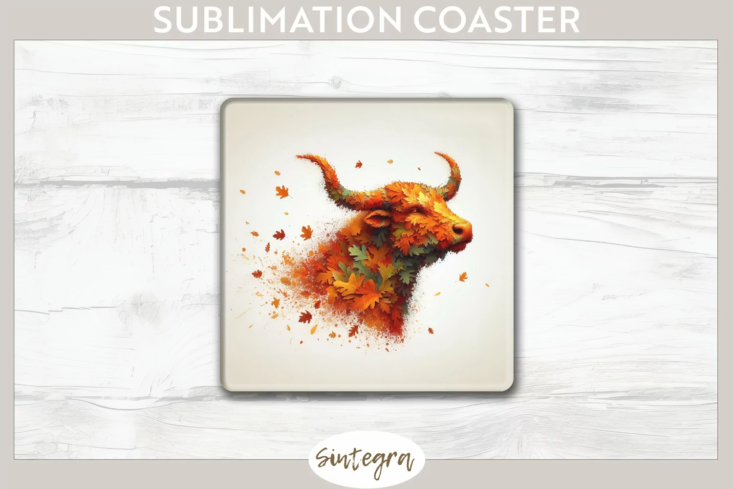 Fall Bull Animal v3 Square Coaster Sublimation example image 1