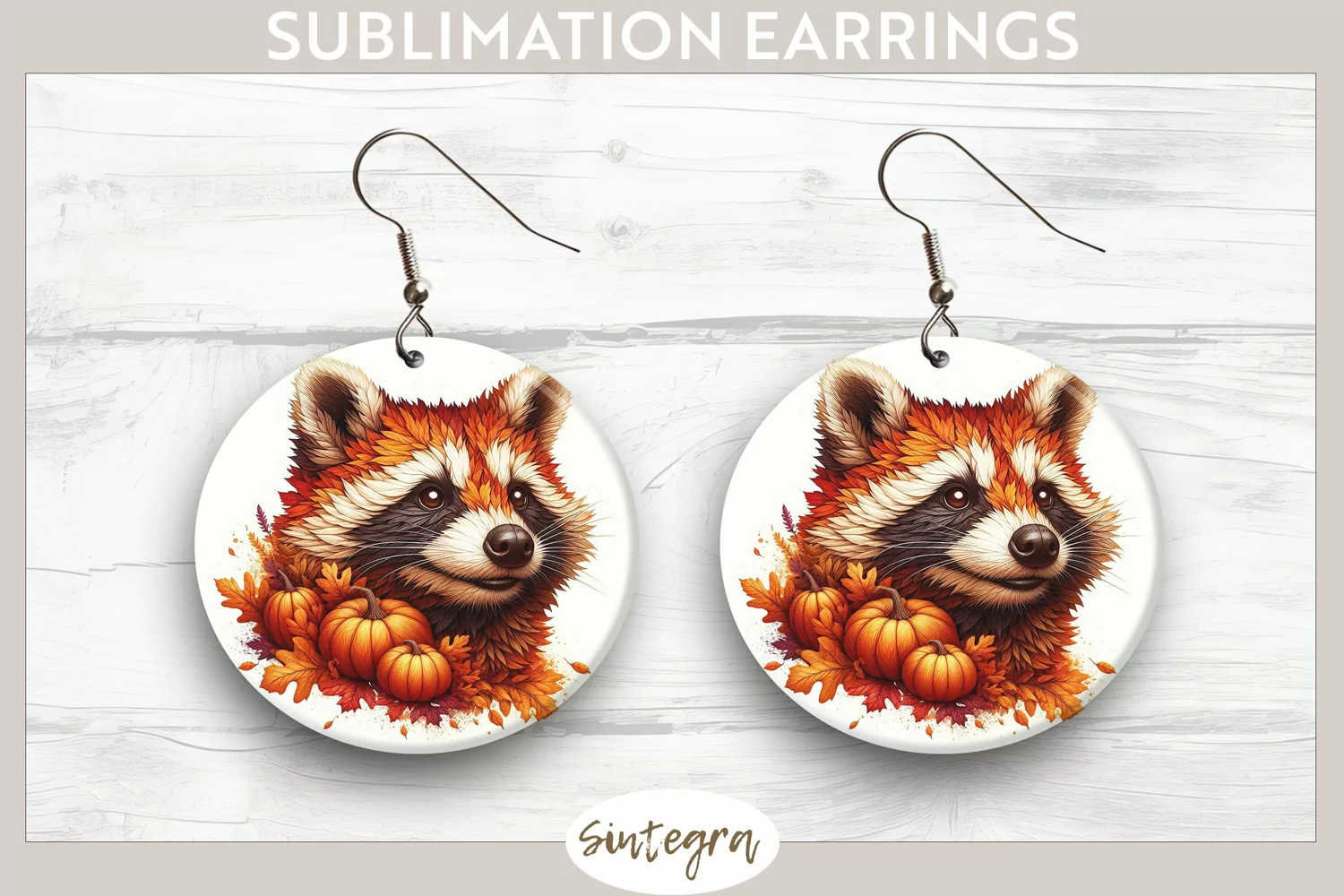 Fall Raccoon Animal v4 Round Earrings Sublimation example image 1