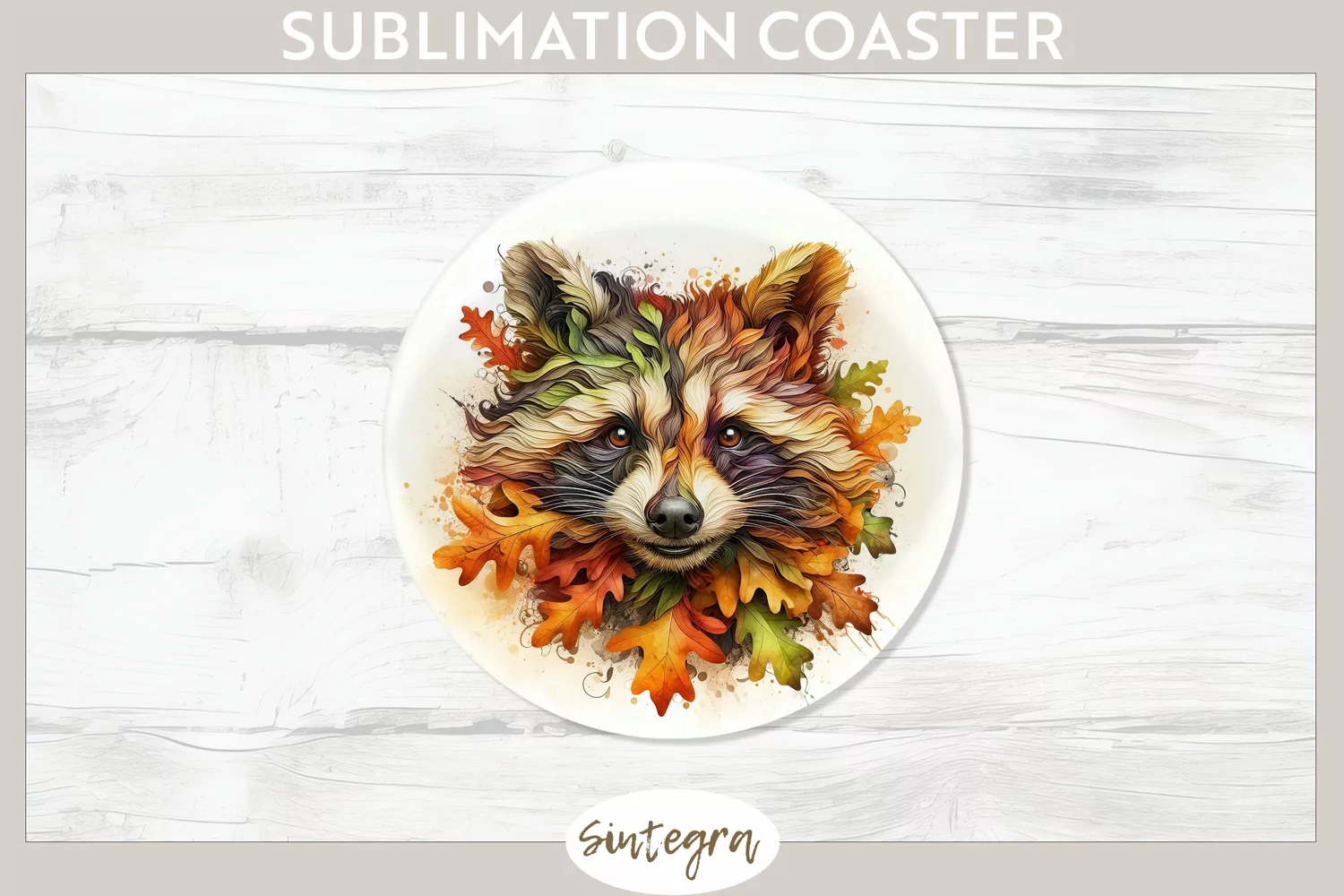 Fall Raccoon Animal v7 Round Coaster Sublimation example image 1
