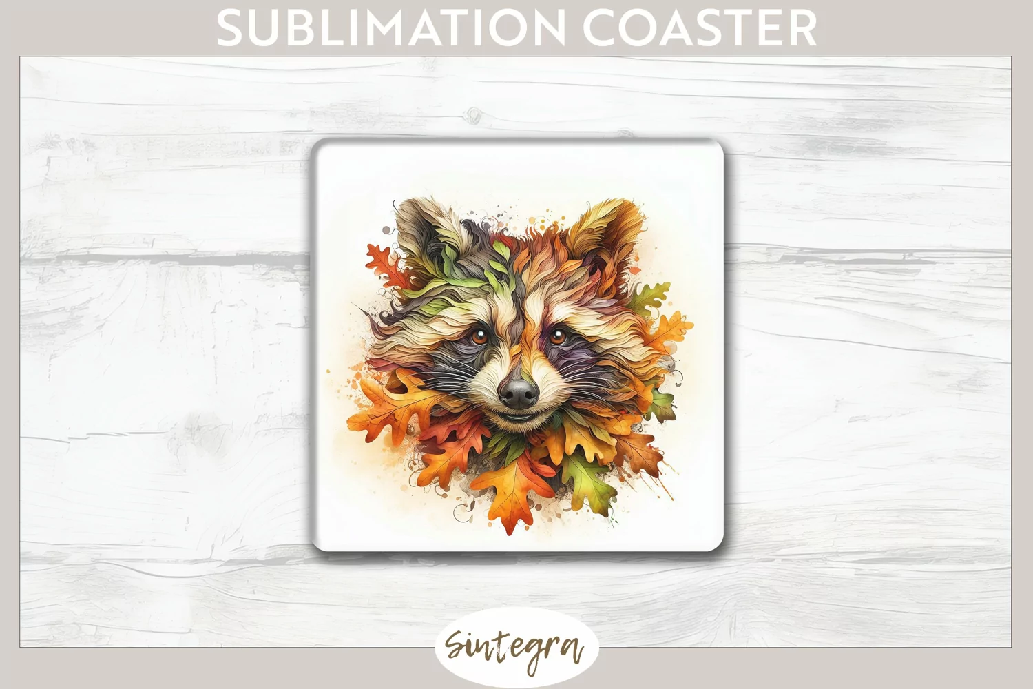 Fall Raccoon Animal v7 Square Coaster Sublimation example image 1
