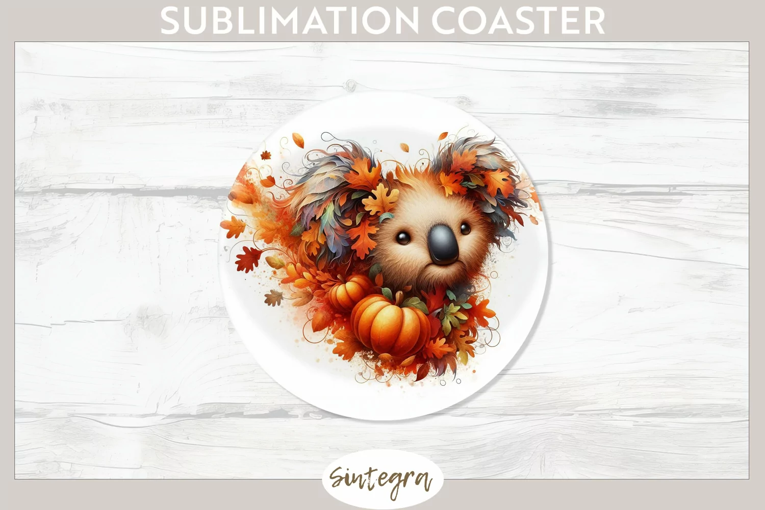 Fall Koala Animal v3 Round Coaster Sublimation example image 1