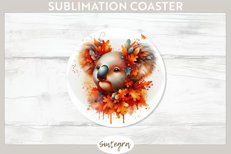 Fall Koala Animal v5 Round Coaster Sublimation example image 1