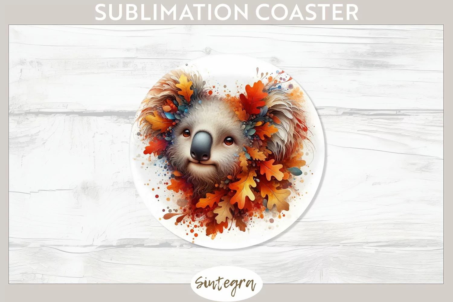 Fall Koala Animal v6 Round Coaster Sublimation example image 1