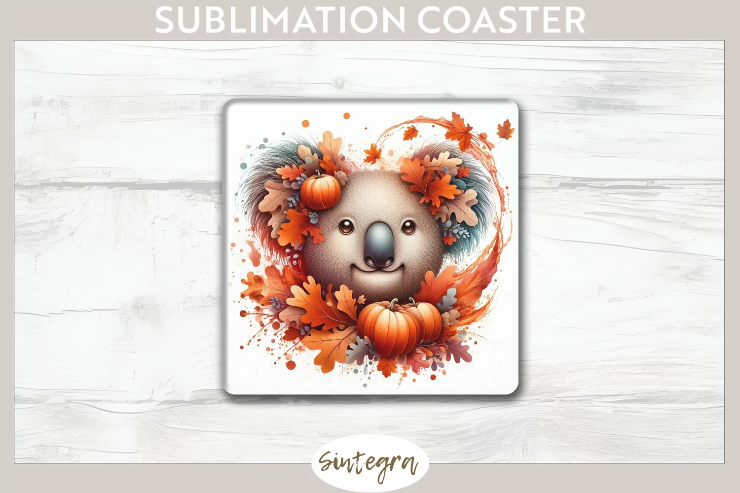 Fall Koala Animal v2 Square Coaster Sublimation example image 1
