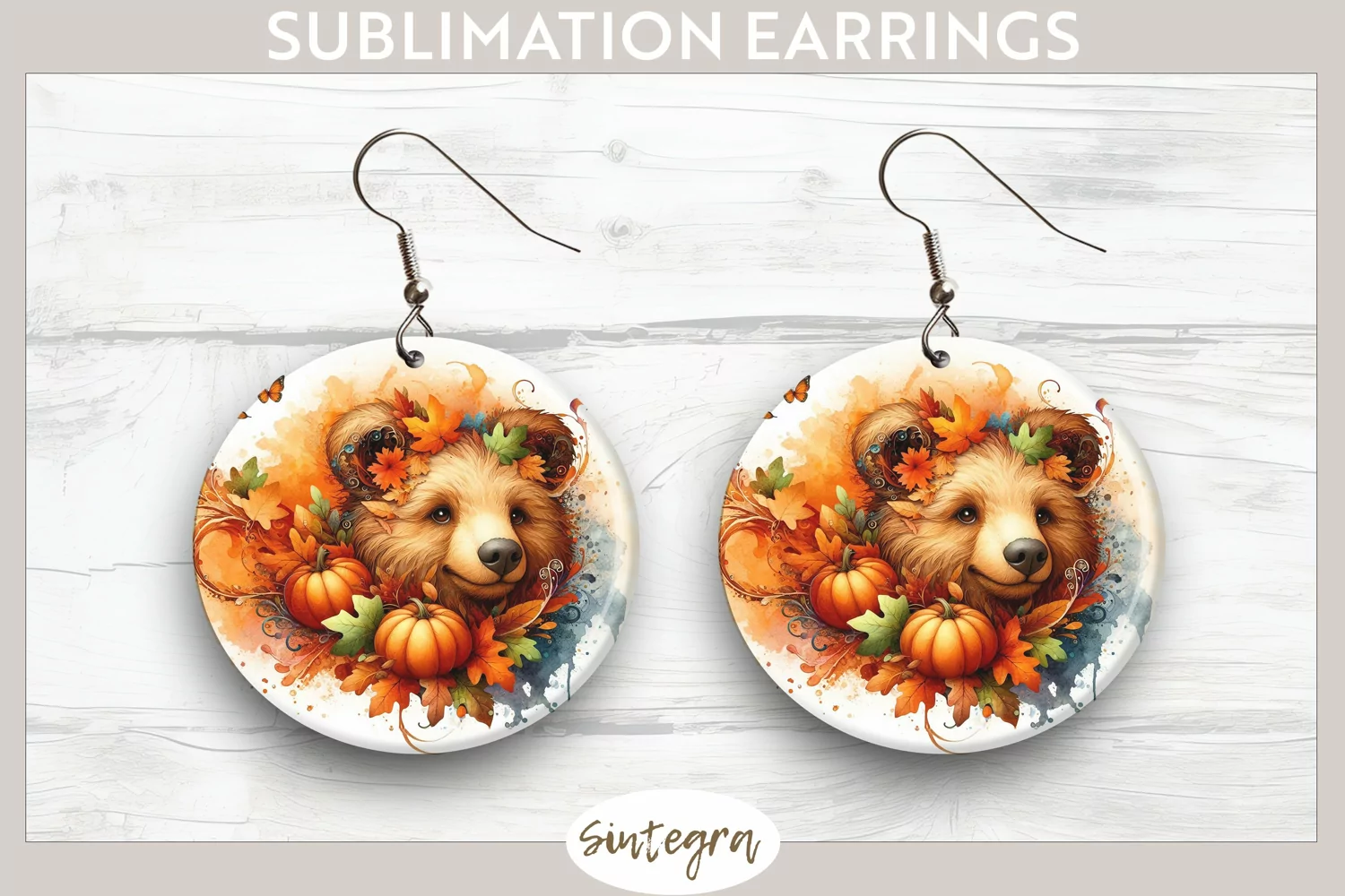 Similar Design Products to Fall Bear Animal v1 Round Earrings Sublimation