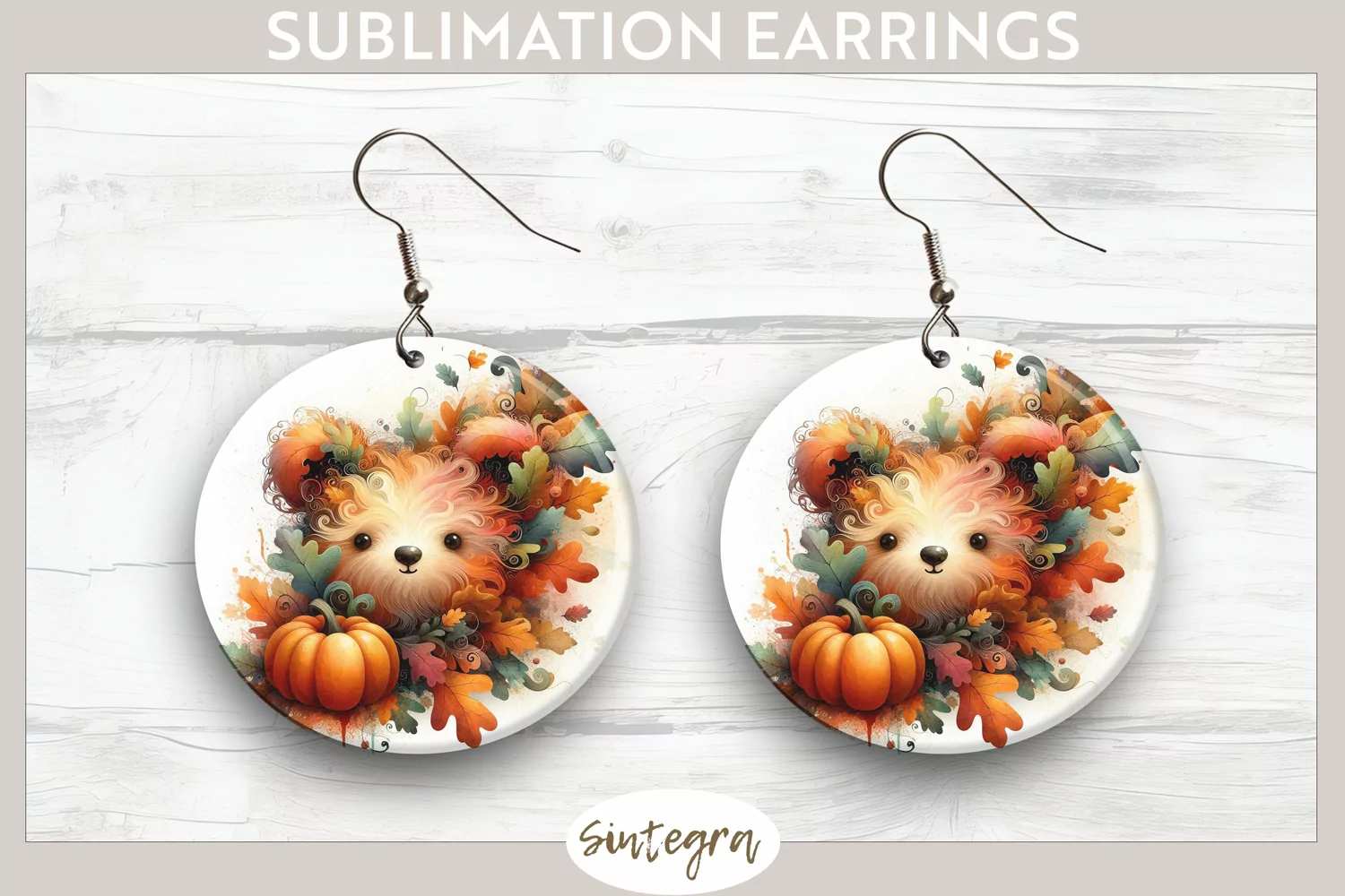 Fall Bear Animal v4 Round Earrings Sublimation example image 1