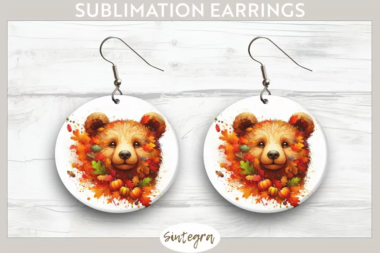 Similar Design Products to Fall Bear Animal v5 Round Earrings Sublimation